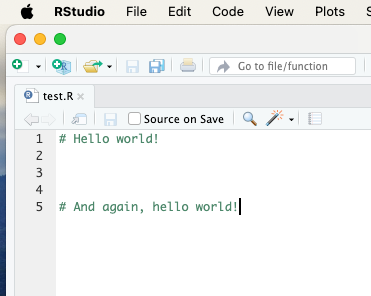 Tämän jälkeen he aloittavat tiedoston test.R työstämisen. Se näyttää pisteessä C0 kaikille käyttäjille tältä:
