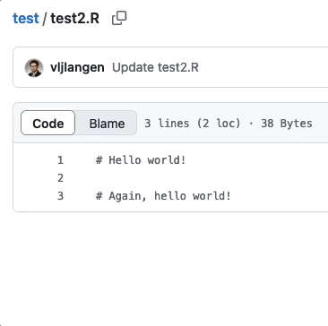 Käyttäjä 2 voi nyt varmistaa, että myös hänen muokkaamansa tiedosto test2 copy.R näkyy etähakemistossa: